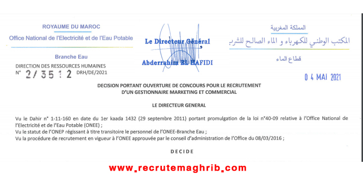 ROYAUME DU MAROCOffice National de l'Electricité et de l'Eau PotableBranche Eau المملكة المغربيةالمكتب الوطني للكهرباء والماء الصالح للشرب-...