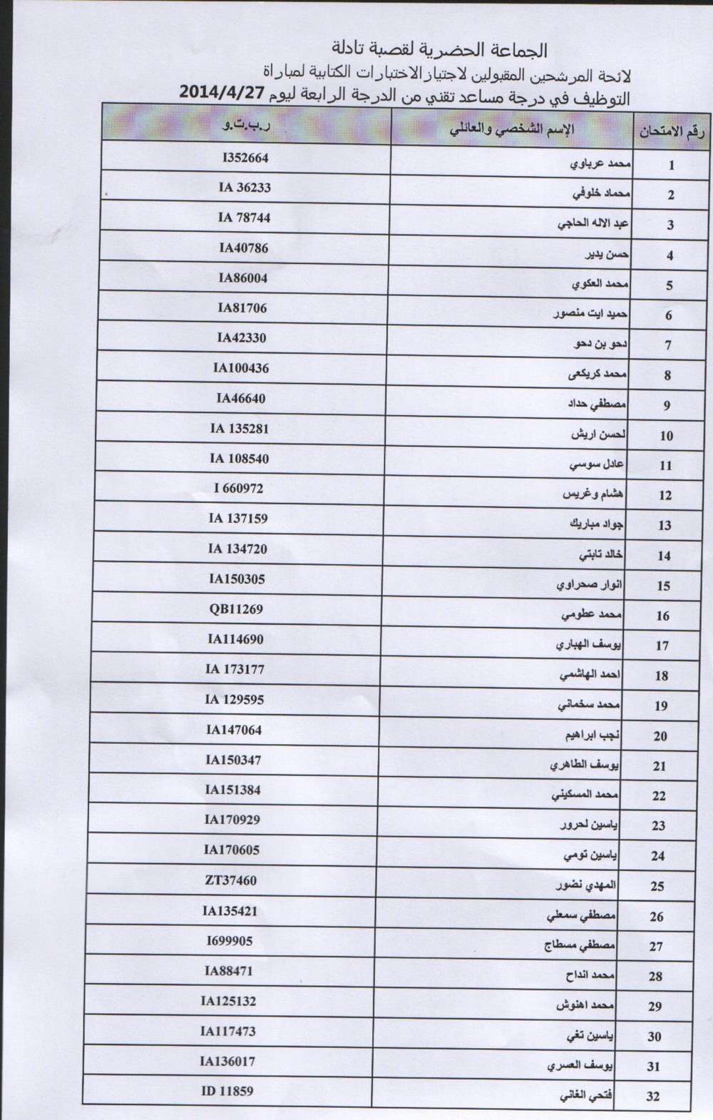 المملكة المغربيةوزارة الداخليةولاية جهة تادلة أزيلالعمالة إقليم بني ملالالجماعة الحضرية لقصبة تادلةمباراة التوظيف في درجة مساعد تقني من الدر...